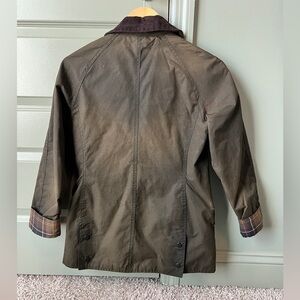 Barbour Beadnell. Smoke free home. Needs to be waxed again. No holes or tears. Selling bc I unfortunately outgrew it. Zipper and buttons function well as you can see in video. I will include the attachable hood. Good price for condition and additional hood