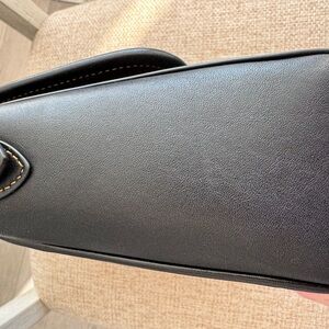 Coach Rambler in glovetanned leather. Features adjustable leather strap, back slip pocket, interior zipper pocket. Includes original Coach hangtag. There is a small indent next to the turn lock as seen in photo - I think it will come out as the bag is worn. I have had it stored away for a bit.