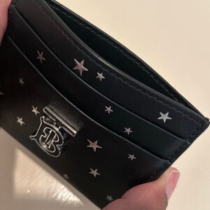 Burberry TB Leather Card Holder Wallet Black Silver Stars Celestial Glam Evening