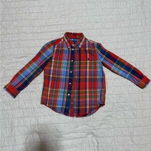 Ralph Lauren Pony Red Blue Plaid Button Down long sleeve Shirt Boys 6 Preppy