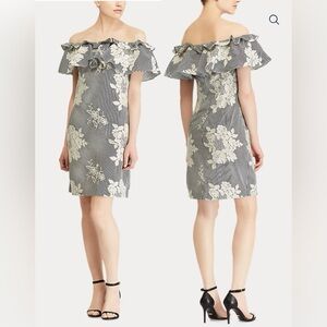 Lauren Ralph Lauren Black & White Striped Cotton Off-the-Shoulder Dress NWT NEW