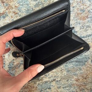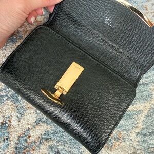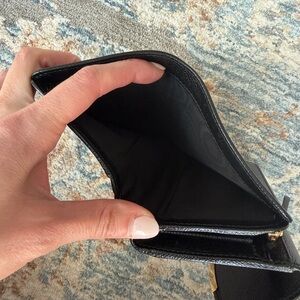 Elegant black wallet featuring a striking gold accent. Perfect for any occasion. Used less than a handful of times. (I have too many wallets and need to spring clean haha)