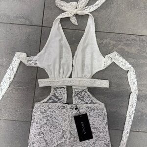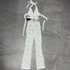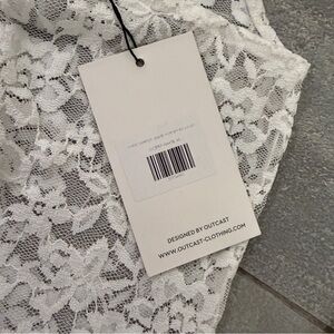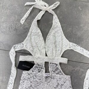 Outcast Suede Jumpsuit White Lace XS Pantsuit Halter Plunge Festival Sheer NWT