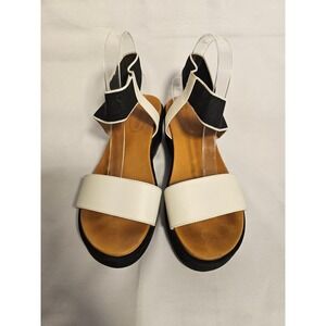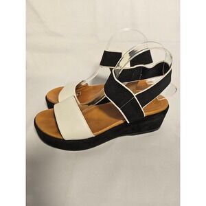 Corso Como Women Platform Wedge Sandals Black White Leather Elastic Strap Sz 9.5