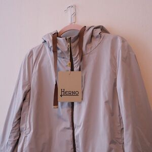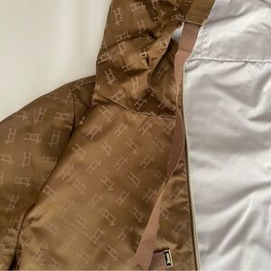 Reversible monogram-print jacket Herno spotlights its inventive take on functional outerwear with this jacket. It’s fitted with an adjustable drawstring hood and reverses from a monogrammed brown outer to a solid brown-hued side.