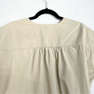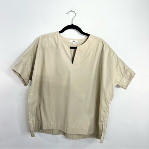 UNIQLO 100% cotton beige tan boxy oversized split neck dolman sleeve top S