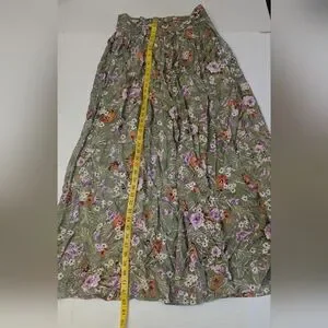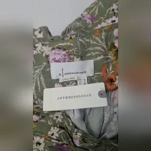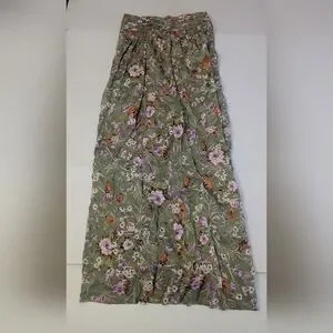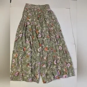 By Anthropologie Wide-Leg Pants Floral Print Olive Green Size 6 Inseam 30"