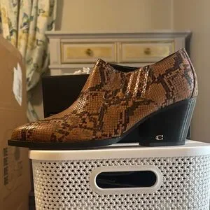 Stylish boots with a bold snake print. Perfect for adding flair to your look.