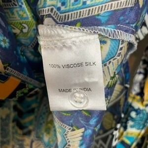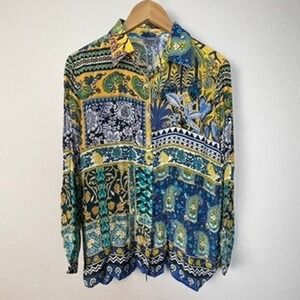 Shana Viscose Silk Tropical Floral Print Button Down Shirt Women's Medium Boho