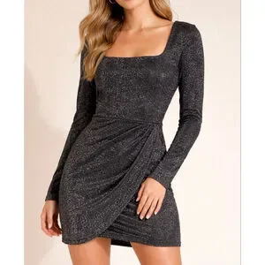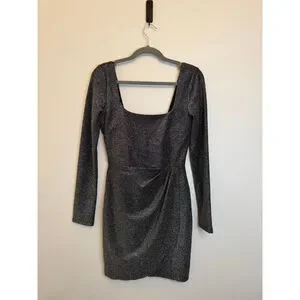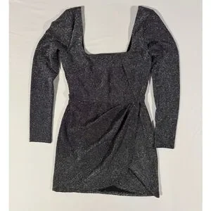 Altar'd State Silver Sparkle Mini Dress Small Metallic Lurex Wrap Evening Sexy