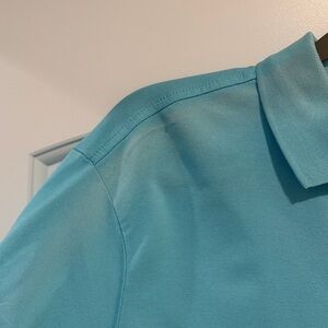 Elegant aqua polo shirt with classic design. Ideal for everyday style. Brand new, but does have fading on right shoulder shown in picture
