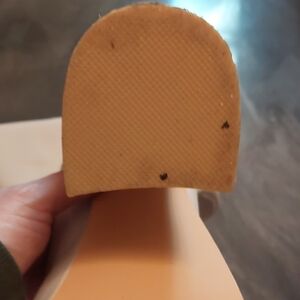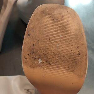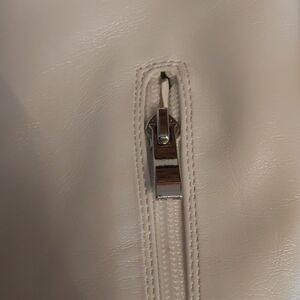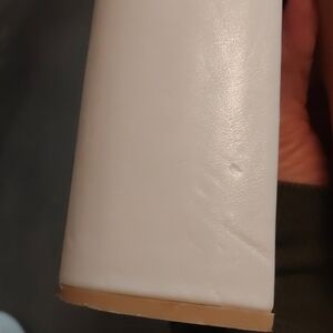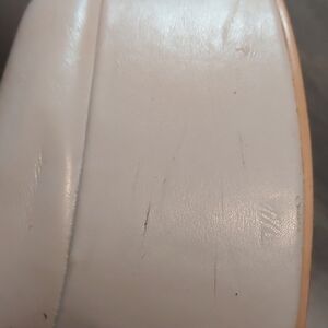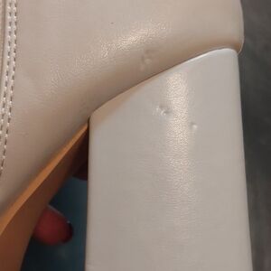 Elevate your look with these chic white platform heeled boots. Perfect for any occasion, these boots add a stylish touch to your ensemble. Some scuffs as noted in photos and a small ink stain on the inside top of right boot. Heel 5.25 inch and platform 2 inches.