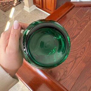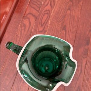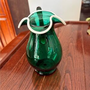 Vintage Fenton Glass Emerald Green Snow Crested with Reed Handle