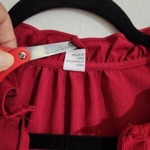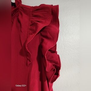 Chic color wine dress with ruffle sleeves. Perfect for any occasion.