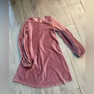 Elegant pink midi dress. Features long sleeves and soft fabric. Perfect for any occasion.