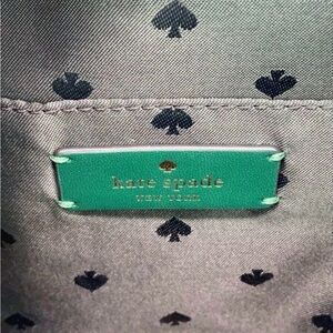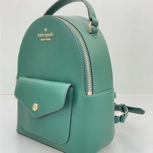 Kate Spade mini green backpack with front pocket. Gold-tone hardware adds elegance.