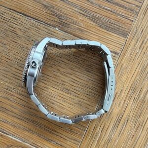 Elegant Islander watch with a sleek silver band and soft pink bezel. Ideal for everyday wear.