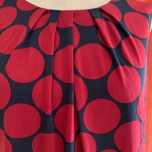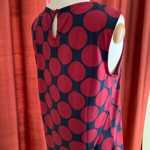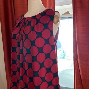 Chic sleeveless blouse with red polka dots on black. Wear alone or under a suit jacket. Perfect for casual or work wear.