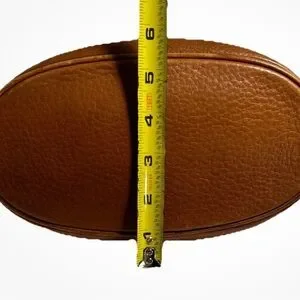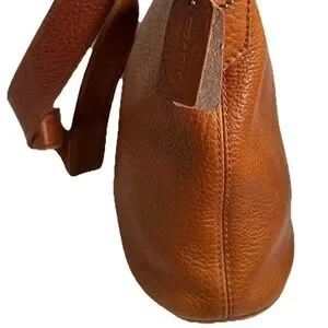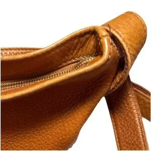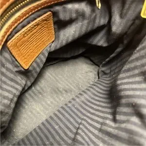 Elegant tan leather shoulder bag. Smooth texture with a sleek design. Has some wear and some minor blemishes but overall a nice vintage Coach crossbody bucket bag.