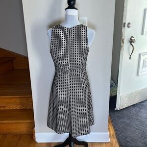 Elegant midi dress with a geometric pattern. Sleeveless and stylish. Perfect for any occasion.