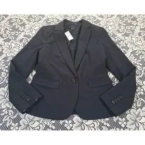 Ann Taylor Blazer Size 4 Navy Blue Polyester Machine Washable One Button NWT