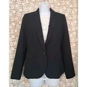 Crafted for the modern professional, this Ann Taylor navy blue blazer merges timeless style with practicality. The size 4 jacket features a classic fit and a sleek one-button design, ideal for business meetings or casual outings. Its long sleeves and notch lapel style offer a sophisticated silhouette, while the blended fabric of polyester and nylon ensures comfort and durability.