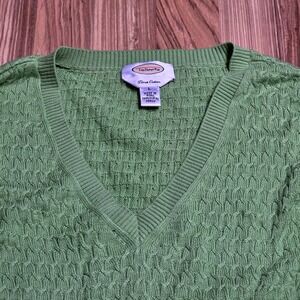 Talbots Pima Cotton V Neck Sweater Women's Size L Green Cable Knit