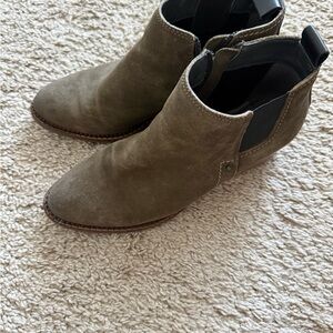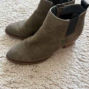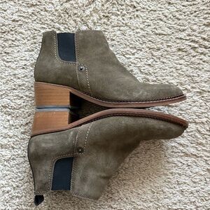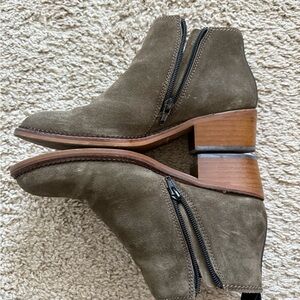Step out in style with these chic olive suede ankle boots. Perfect for any occasion, they offer both comfort and elegance.