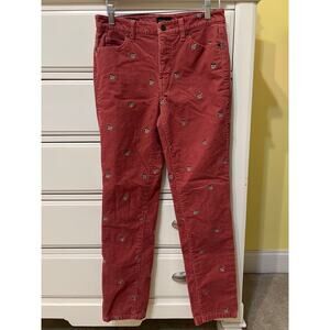 Talbots Stretch Corduroy Straight Leg Mallard Embroidered Pants Size 4 Petite