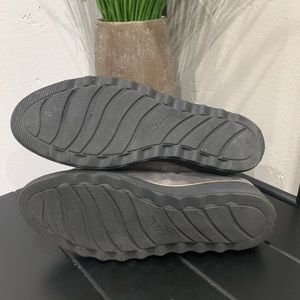 Stylish gray ankle boots by Clarks. Features a chic bow detail. Comfortable wedge sole. Perfect for any occasion.