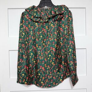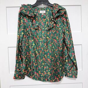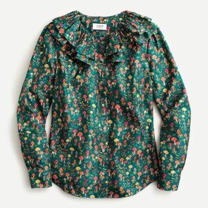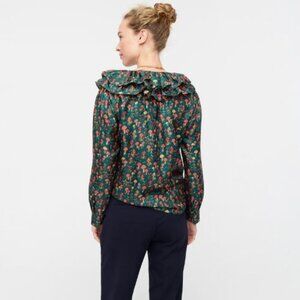 NEW J.Crew Mushroom Floral Silk-Twill Ruffle-Collar Top Size Small 23585