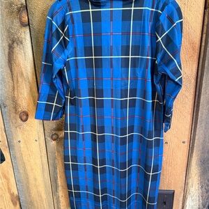Chic plaid dress with vibrant blue and yellow pattern. Perfect for any occasion. Wrinkle free material- perfect weight