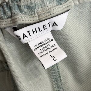 LARGE farallon knit jogger pants from Athleta in Fog Camo. Pockets. Elastic waistband. Soft and stretchy. In great preloved condition.