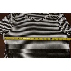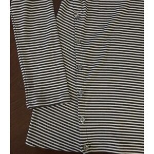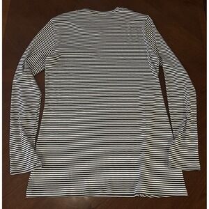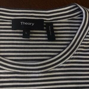 Theory Button-Hem Long-Sleeve Tee in Striped Stretch Knit Size L