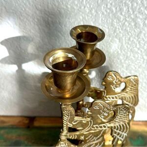 Brass Angel Candle Holders 2 Pc Set Vintage Carved Metal Decor Christmas Holiday