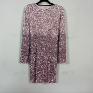 RETROFETE NIKKI OMBRE PINK MINI SEQUIN DRESS WITH SLEEVES SIZE MEDIUM