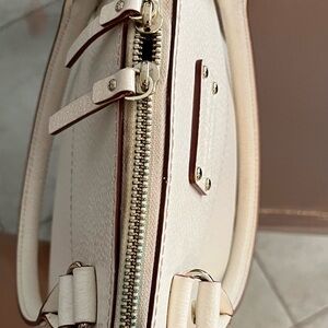 Chic Kate Spade satchel in cream & chocolate brown trim and dust bag. Features sturdy handles and elegant design. Maybe used 1 time . No callouts or issues wonderful find😘