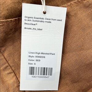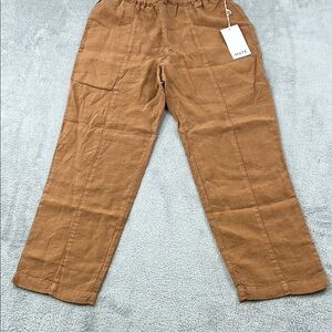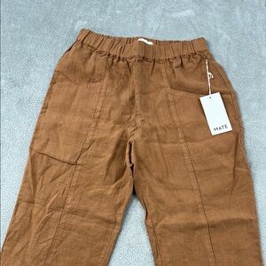 NEW MATE The Label S 100% Linen Sedona Brown Linen High Waisted Pant Pockets