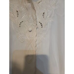 Keywords: Anne Larson, Blouse, Top, Cream, Embroidered, Petite, Button Up, Career, Office Wear, Vintage, Long Sleeve