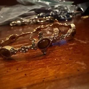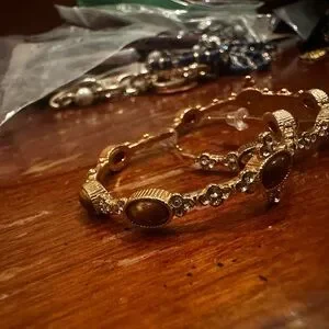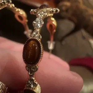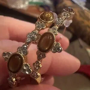 Genuine Tigers Eye Gem Stone earrings feature a beautiful combination of brown and gold tones, perfect for adding a touch of elegance to any outfit. The intricate design and sparkling accents make them a must-have accessory.