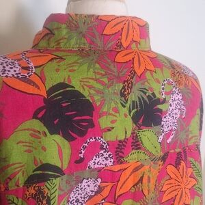 CC California Floral/Animal Print 100% Linen Hi/lo Button Front Size 1X
