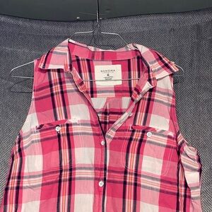Sonoma Pink and White Plaid Sleeveless Shirt