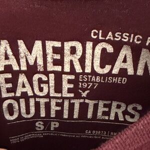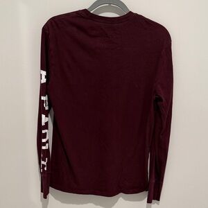 American Eagle Outfitters Men's Maroon and White Graphic Long Sleeve Tee