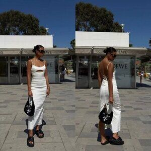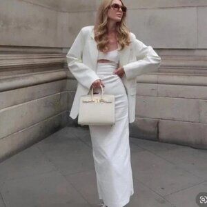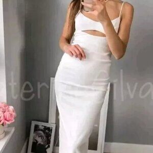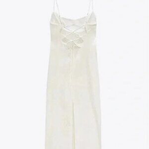 ZARA CUT-OUT bust Lace up Back Linen Blend Midi SIZE L DRESS 7385/220