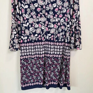 Eliza J Boat Neck Bell Sleeve Floral Navy Shift Dress