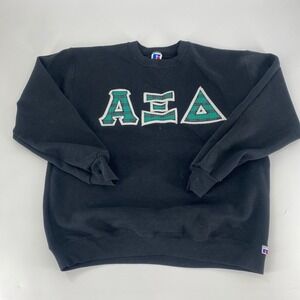 Russell Athletic AEA Black Sweatshirt Mens XL Crew Neck Pullover Spell Out VTG