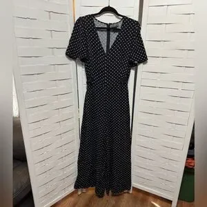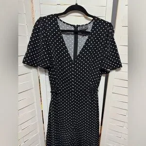 Step out in style with this elegant black & white polka dot jumpsuit . Perfect for any occasion, it offers a flattering fit and timeless design. Tie waist. No stains, no holes. Excellent condition. Very versatile. 100% rayon