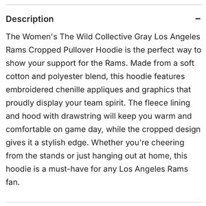 AUTHENTIC The Wild Collective Los Angeles RAMS Cropped Hoodie. Excellent used condition. Women’s size S.