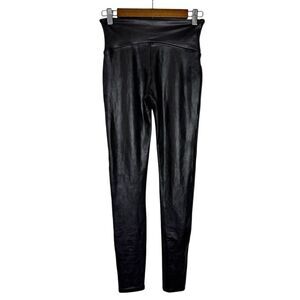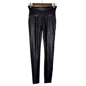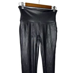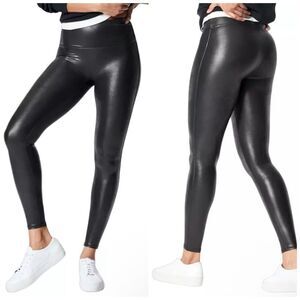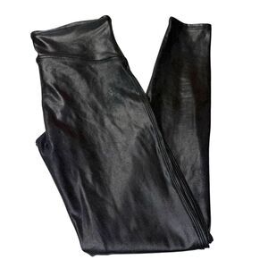 Spanx Leggings M Faux Leather Shaping Slimming Black Pants Liquid Look Pull On