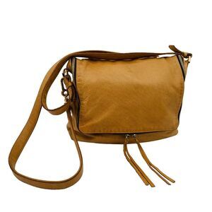 Carla Mancini Crossbody Shoulder Messenger Flap Bag Tan Leather